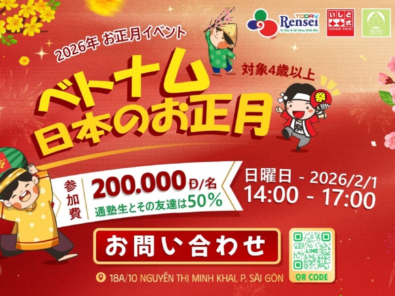 日本・ベトナムのお正月お楽しみイベントを、2月1日(日)14-17時で実施。この時間内で出入り自由のシステムです!